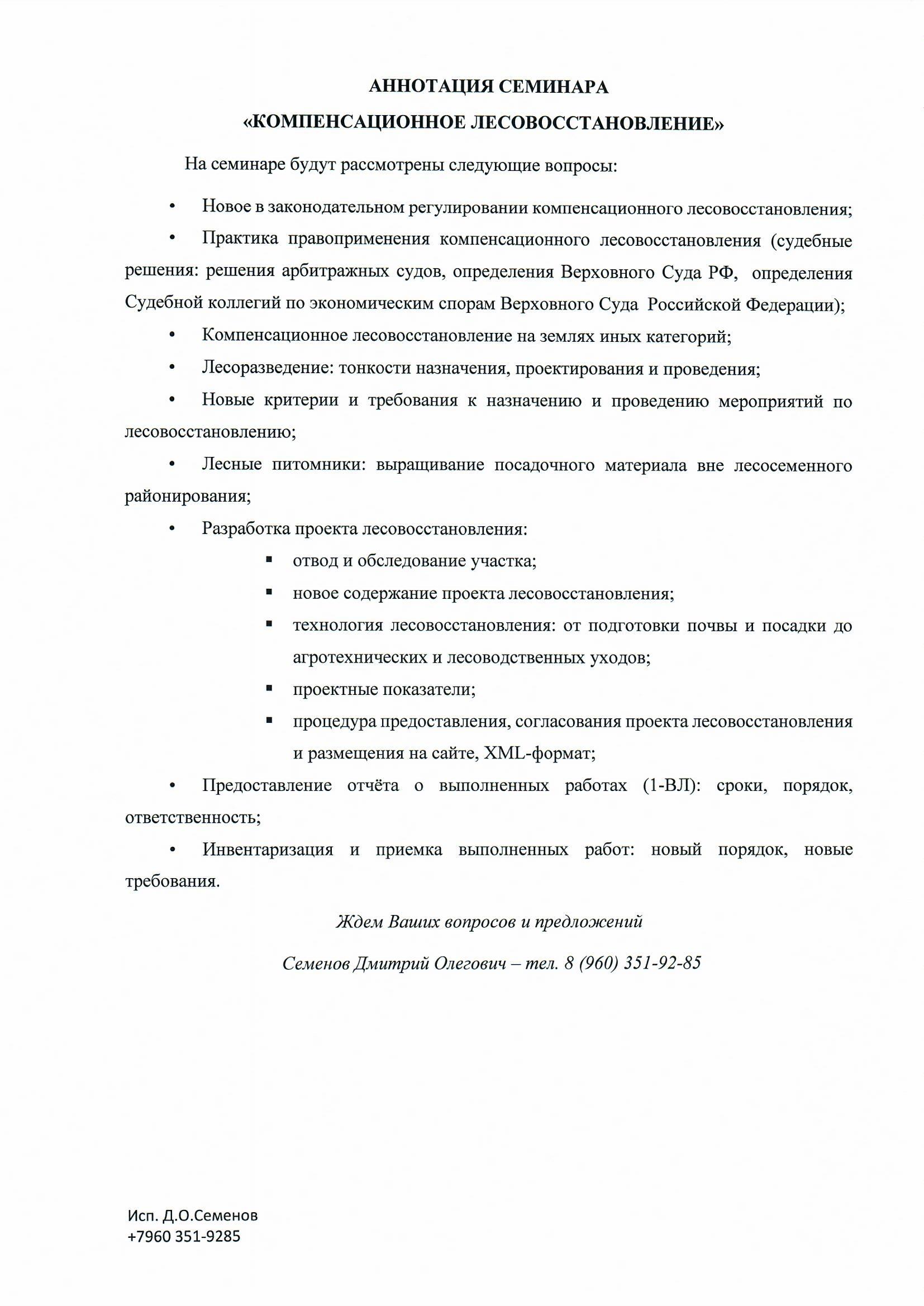 Дистанционный семинар «Компенсационное лесовосстановление».