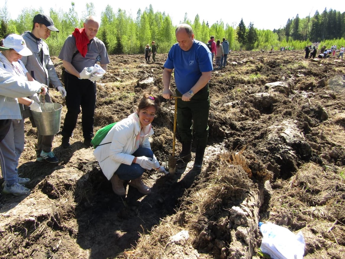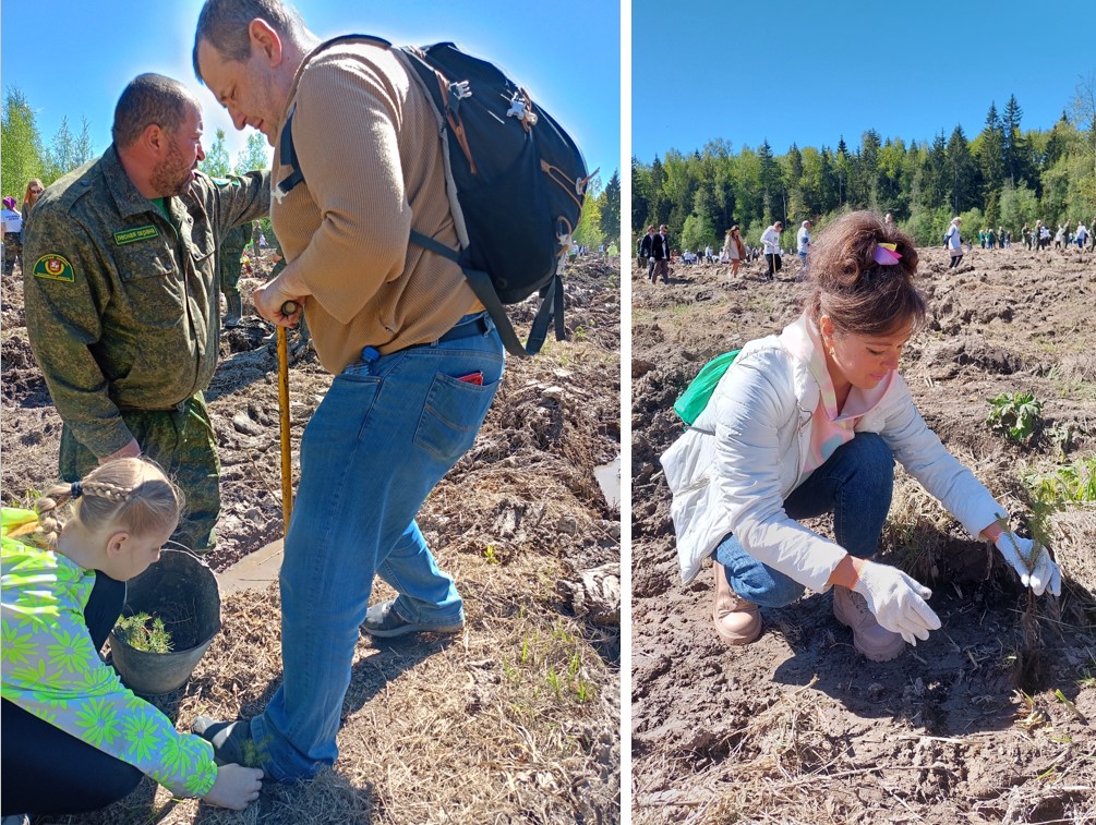 В рамках акции были высажены сеянцы ели, сосны и дуба.