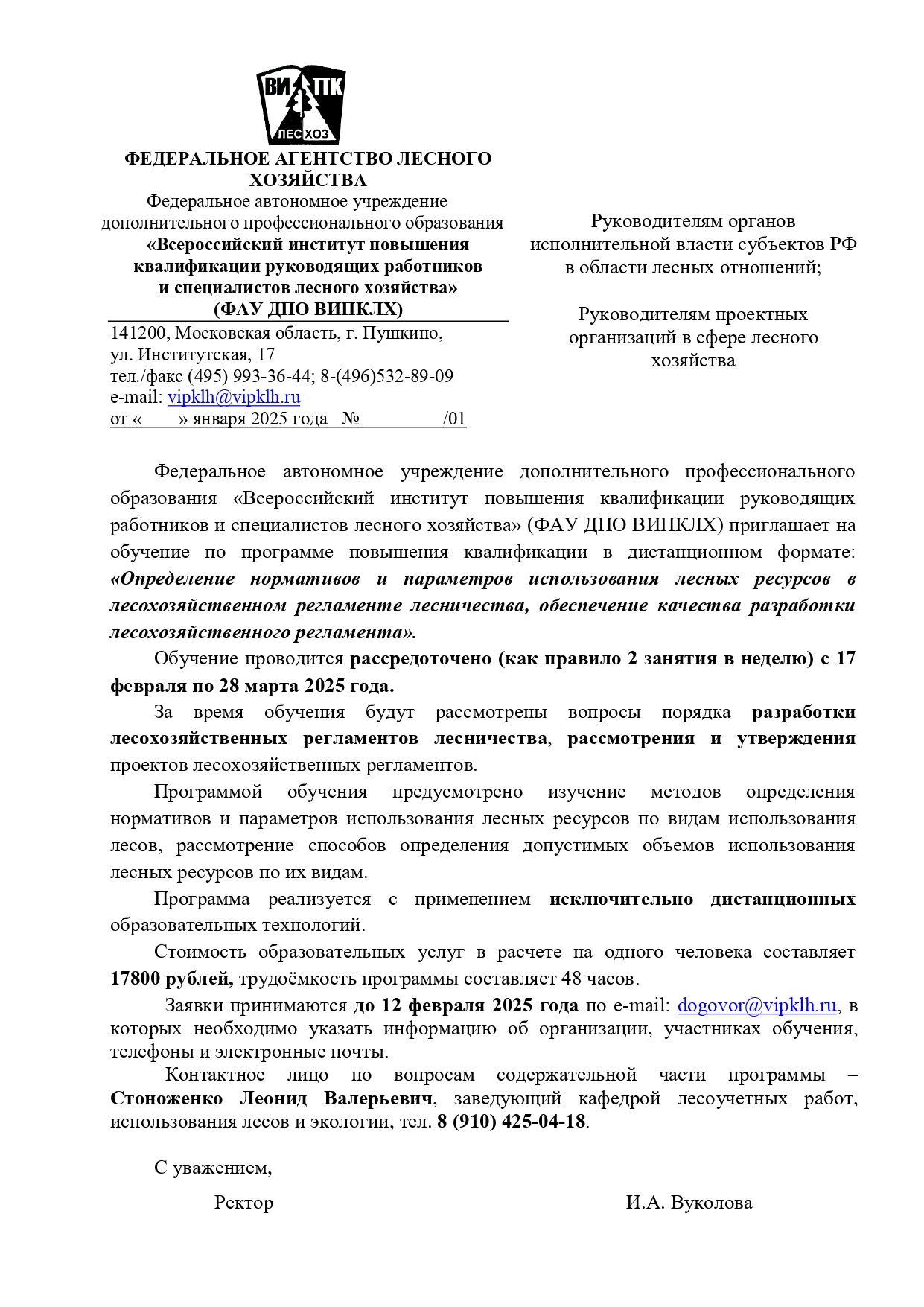 Приглашение на ДИСТАНЦИОННОЕ обучение по программе повышения квалификации: "Определение нормативов и параметров использования лесных ресурсов в лесохозяйственном регламенте лесничества, обеспечение качества разработки лесохозяйственного регламента"
