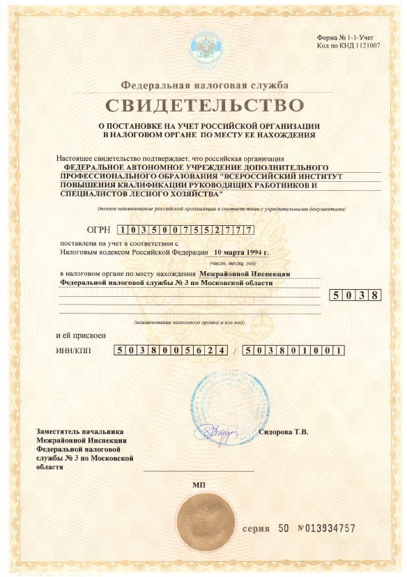 - Свидетельство о постановке на учет в налоговом органе