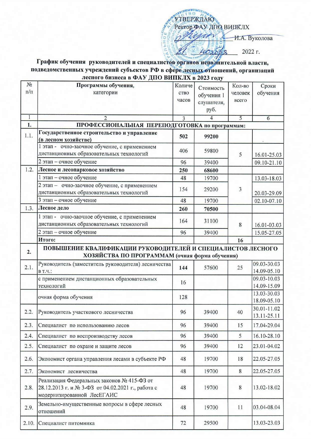 С 22.01.2018 г. трехнедельный курс повышения квалификации на базе ФАУ ДПО ВИПКЛХ проходили специалисты ФГБУ «Рослесинфорг».